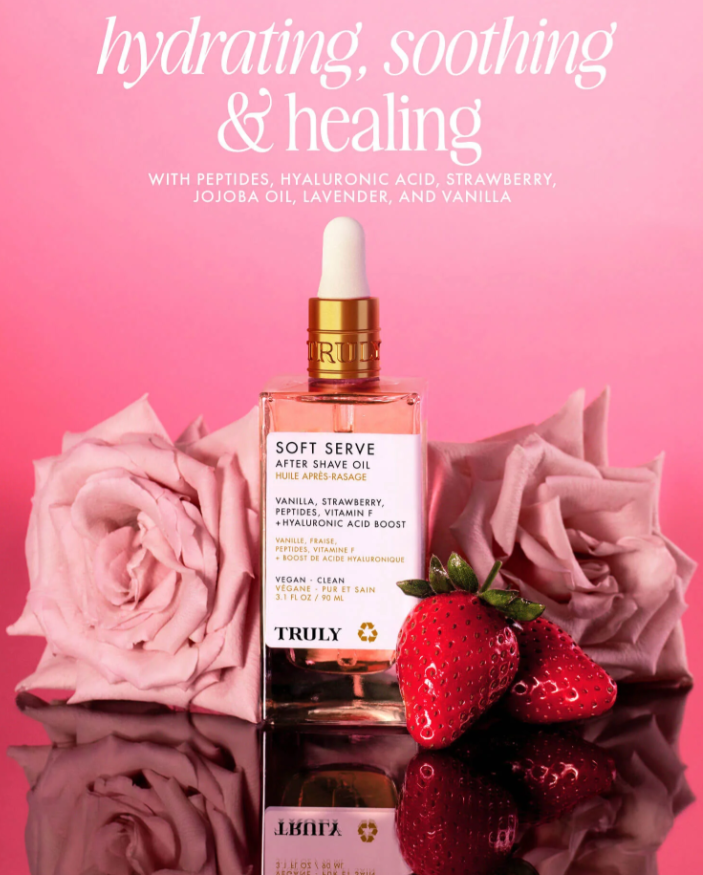 Después de usar tu crema de afeitar Soft Serve, seca tu piel a palmaditas y aplica de 2 a 3 gotas en el área. Úsalo diariamente para prevenir vellos encarnados y mantener la elasticidad.